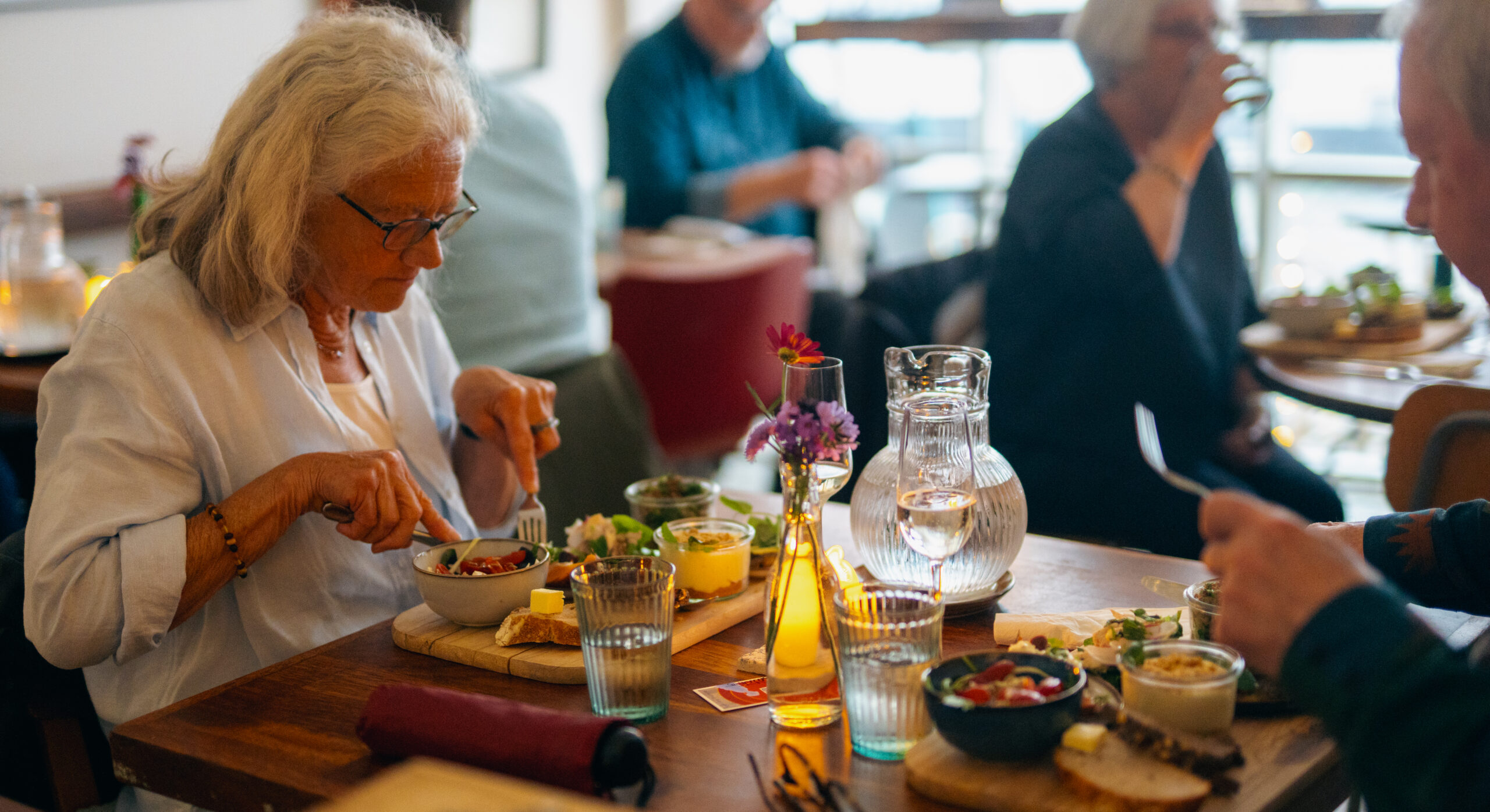 - Frisk salat og brød fra Café Satchmo’s køkken